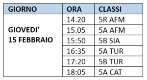 Si comunica che sono convocati i consigli delle classi quinte, secondo il calendario di seguito riportato, per discutere i seguenti punti all’o.d.g.: