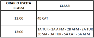 Si comunica che il Venerdì 01 Marzo 2024, per adesione all’assemblea sindacale dei docenti, le classi di seguito indicate usciranno anticipatamente come indicato: