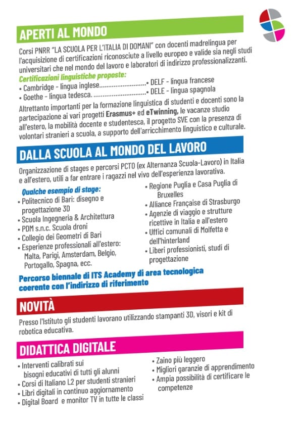 – Amministrazione Finanza e Marketing – Sistemi Informativi Aziendali – Turismo – Costruzioni, Ambiente e Territorio – Istruzione serale per adulti