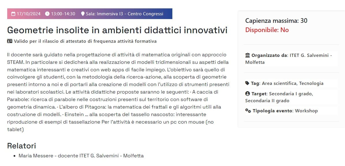 Tema: Realizzazione di modelli tridimensionali con web apps “Geometrie insolite in ambienti didattici innovativi”