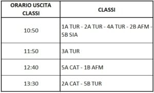 Si comunica che il Giovedì 29 Febbraio 2024, per adesione all’assemblea sindacale dei docenti, le classi di seguito indicate usciranno anticipatamente come indicato: