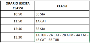 Si comunica che il Martedì 05 Marzo 2024, per adesione all’assemblea sindacale dei docenti, le classi di seguito indicate usciranno anticipatamente come indicato: