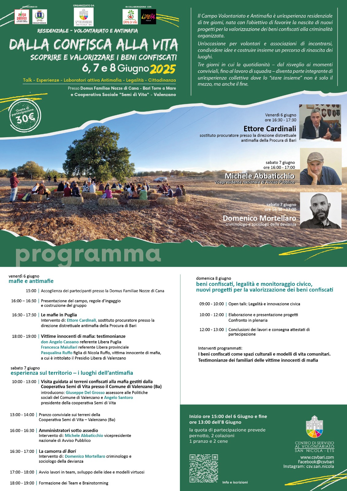 Campo Volontariato e Antimafia “Dalla confisca alla vita” 6-7-8 Giugno 2025
