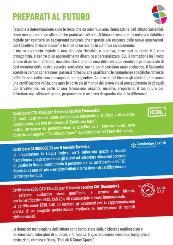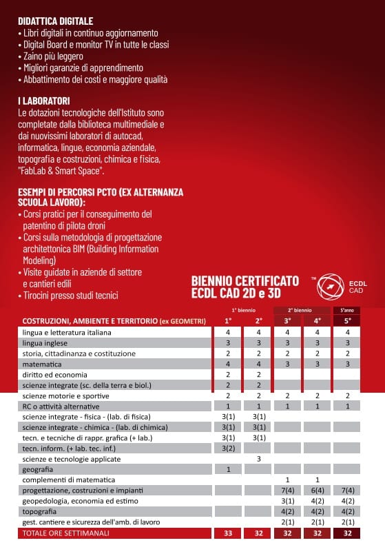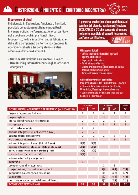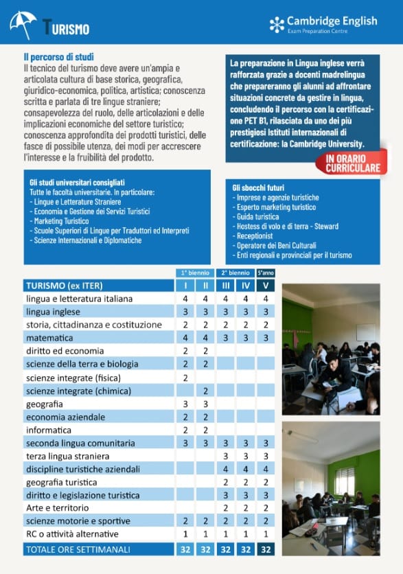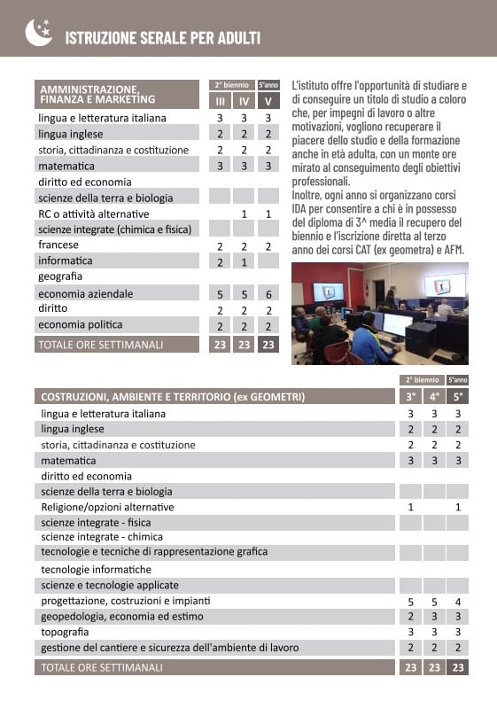 – Amministrazione Finanza e Marketing – Sistemi Informativi Aziendali – Turismo – Costruzioni, Ambiente e Territorio – Istruzione serale per adulti